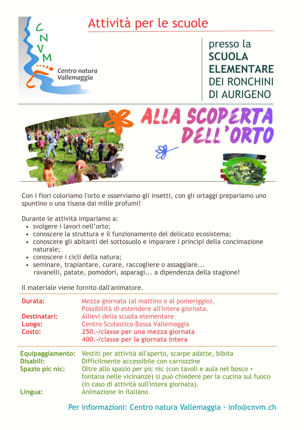 -Organizzare la collaborazione con la scuola elementare del Ronchini di Aurigeno